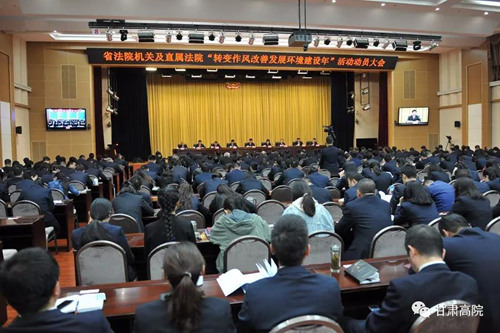 4月10日,省法院召开全体干警大会,传达全省“转变作风改善发展环境建设年”活动动员大会精神,并对省法院及直属法院“转变作风改善发展环境建设年”活动进行动员和部署。省法院党组书记、院长张海波强调,要在省委的正确领导下,坚持改进作风不懈怠、优化环境不放松,努力推动全省法院各项工作再上新台阶、取得新成绩。