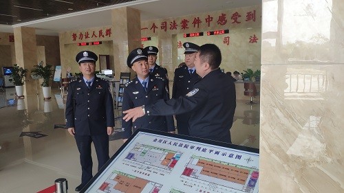 为加强司法警察队伍建设,提高警务保障工作水平,探索武威铁路运输法院司法警察工作的新思路、新举措、新方法,10月13日,武威铁路运输法院司法警察党支部书记顾继栋带领支部成员到金川区人民法院参观学习。在金川区人民法院司法警察大队副大队长贠发明的带领下,先后参观了金川区人民法院法警队装备室、安检大厅、囚车专用通道、羁押室、刑事法庭、健身房等办公办案场所,观看了其制作的党建工作宣传片。大家边走边看,边听边交流,深入了解了金川区人民法院司法警察的队伍管理和党建等工作的开展情况及好的作法和先进经验。