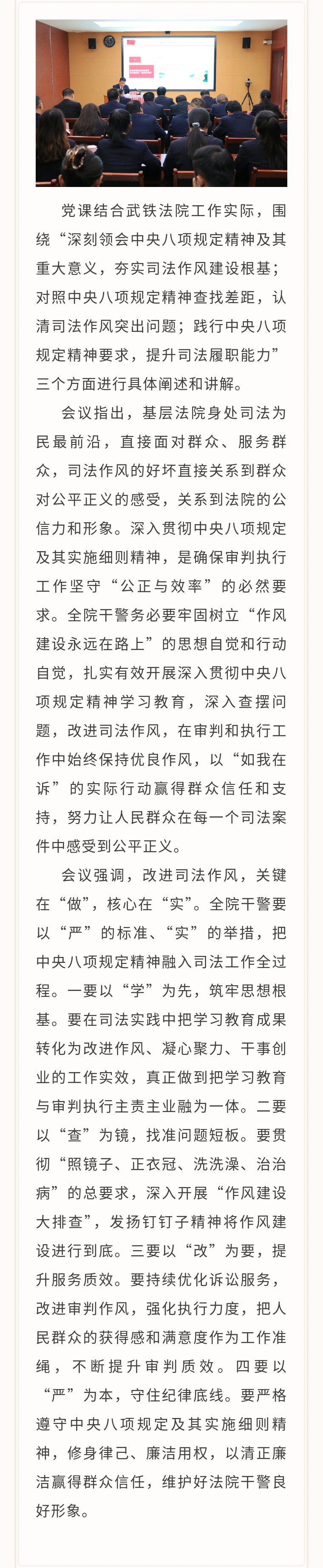 武铁法院党组书记、院长李震讲授深入贯彻中央八项规定精神学习教育专题党课